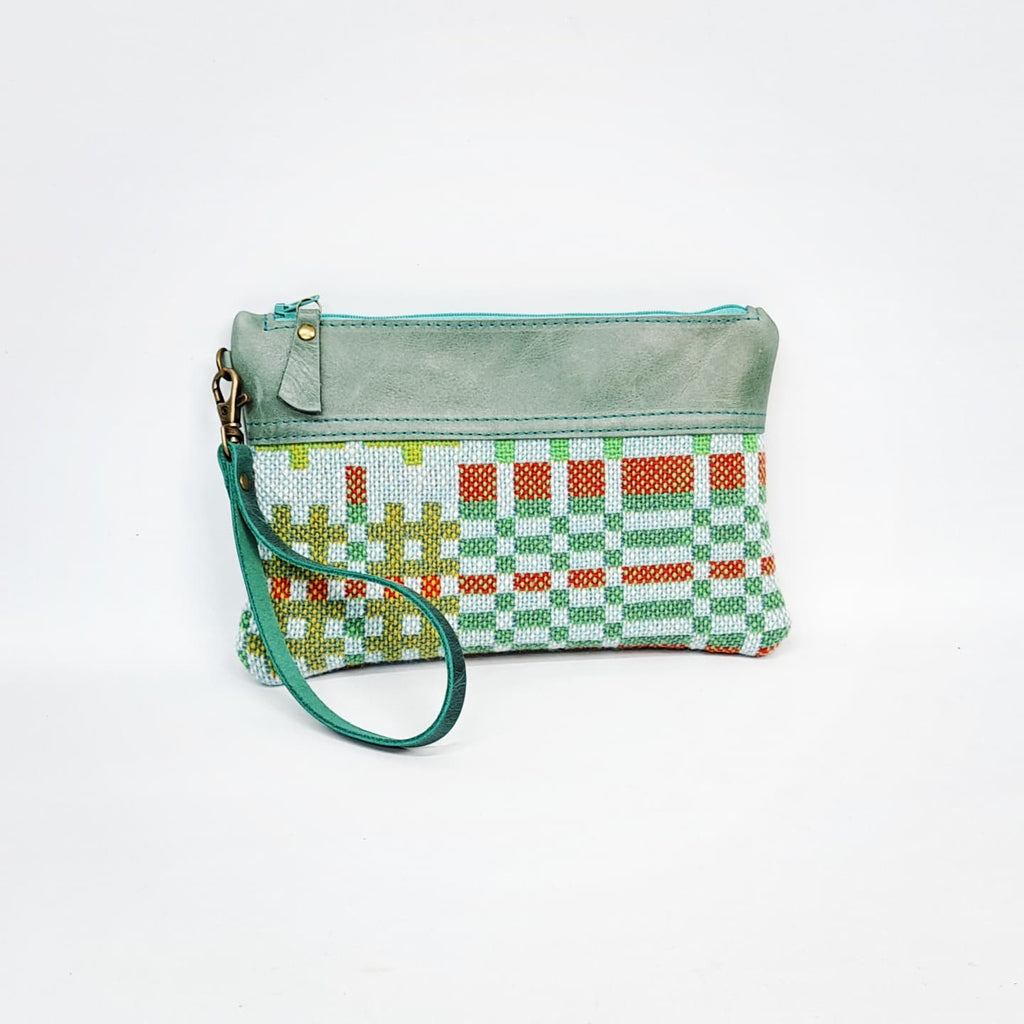 Leather & Welsh Wool Purse - Glas